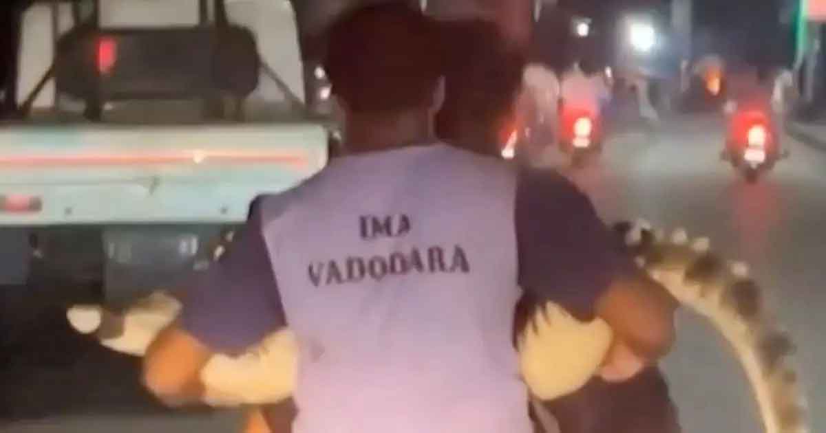 এমনই একটি ভিডিও ভাইরাল হচ্ছে, যেখানে দুই যুবক একটি কুমিরকে স্কুটারে চড়িয়ে বন বিভাগের অফিসে নিয়ে যাচ্ছে। কুমিরটি বিশ্বমিত্র নদী থেকে বেরিয়ে এসে আবাসিক এলাকায় ঢুকেছিল, তাকে উদ্ধার করার দায়িত্ব নিয়েছিল এই দুই যুবক। ভিডিওতে দেখা যাচ্ছে, এক যুবক ব্যস্ত স্কুটার চালাচ্ছে, আর পিছনে বসে থাকা যুবকটি কুমিরটিকে (Crocodile on scooter) কোলে নিয়ে বসে আছে। সোশ্যাল মিডিয়ায় ভিডিওটি ছড়িয়ে পড়ার সঙ্গে সঙ্গেই মানুষ এই তরুণদের নির্ভীক শৈলীর প্রশংসা করছেন। কেউ কেউ বলেন, এই বিপর্যয়ের মধ্যেও এই যুবক নাগরিক হিসেবে নিজের দায়িত্ব থেকে সরে যাননি। কেউ কেউ বলেছেন, ভয়ের উপর জয় আছে।