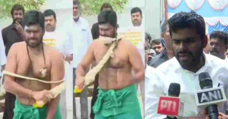 Annamalai Protest: প্রচণ্ড ঠান্ডায় অর্ধনগ্ন হয়ে নিজের শরীরে চাবুকের আঘাত, তামিলনাডু বিজেপি সভাপতির ভাইরাল ভিডিও